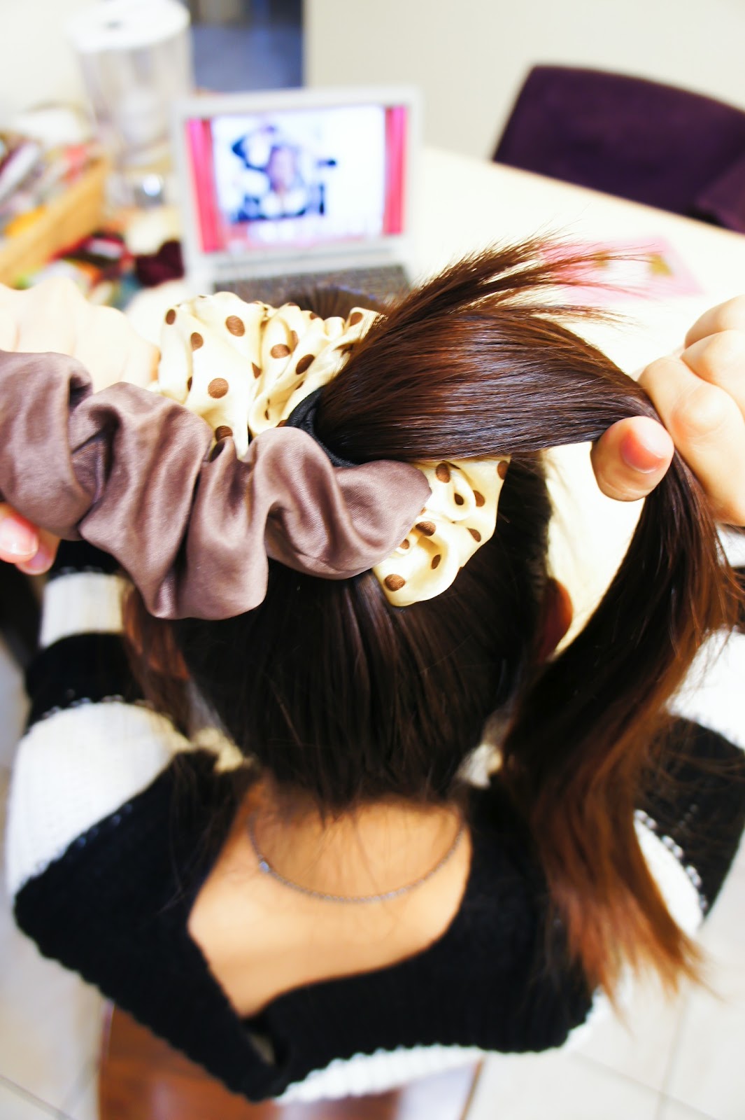 準備道具有:兩個黑色小髮圈、10支髮夾、大腸圈、1支梳子
